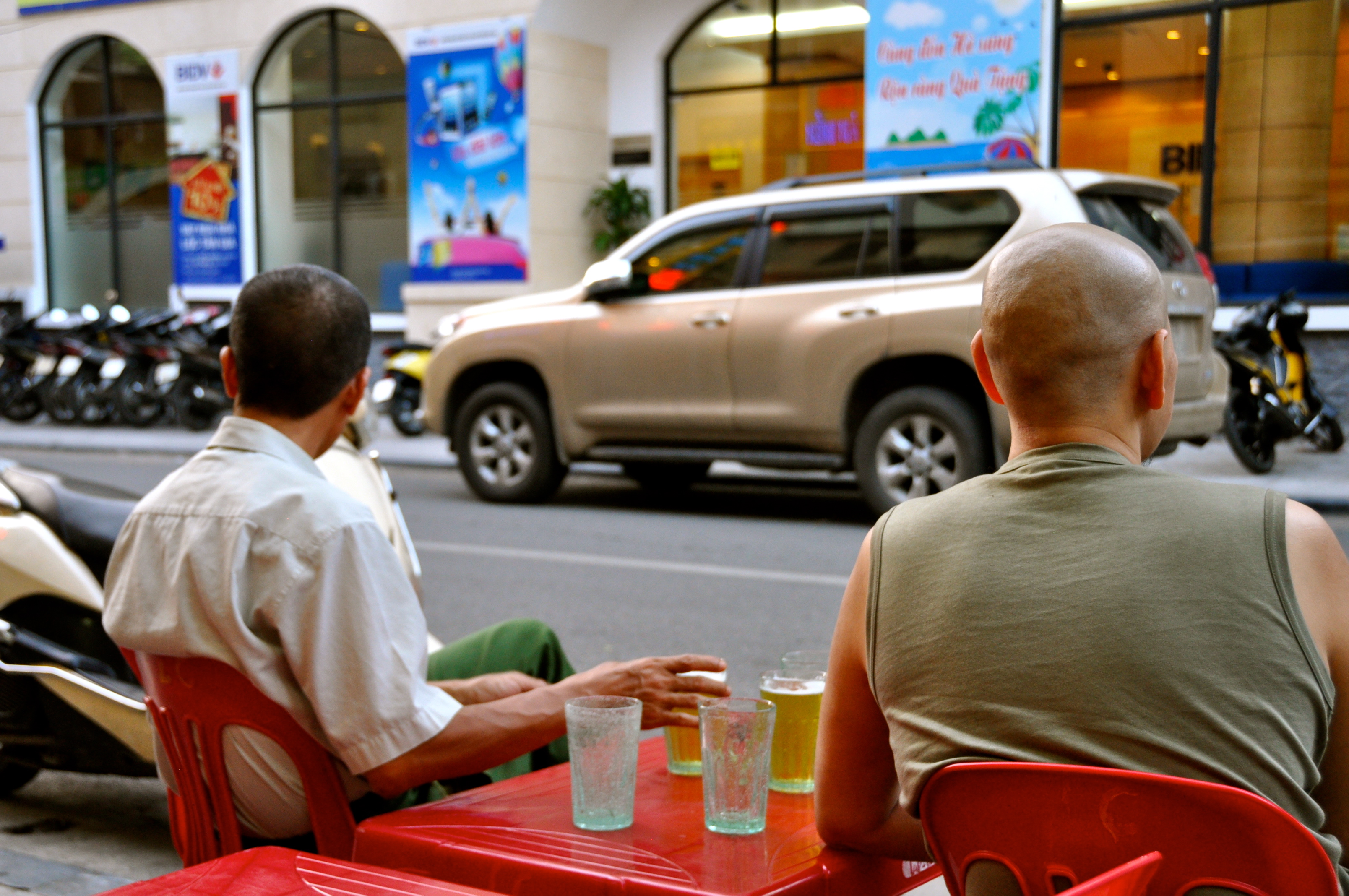 Watching traffic, drinking bia hoi